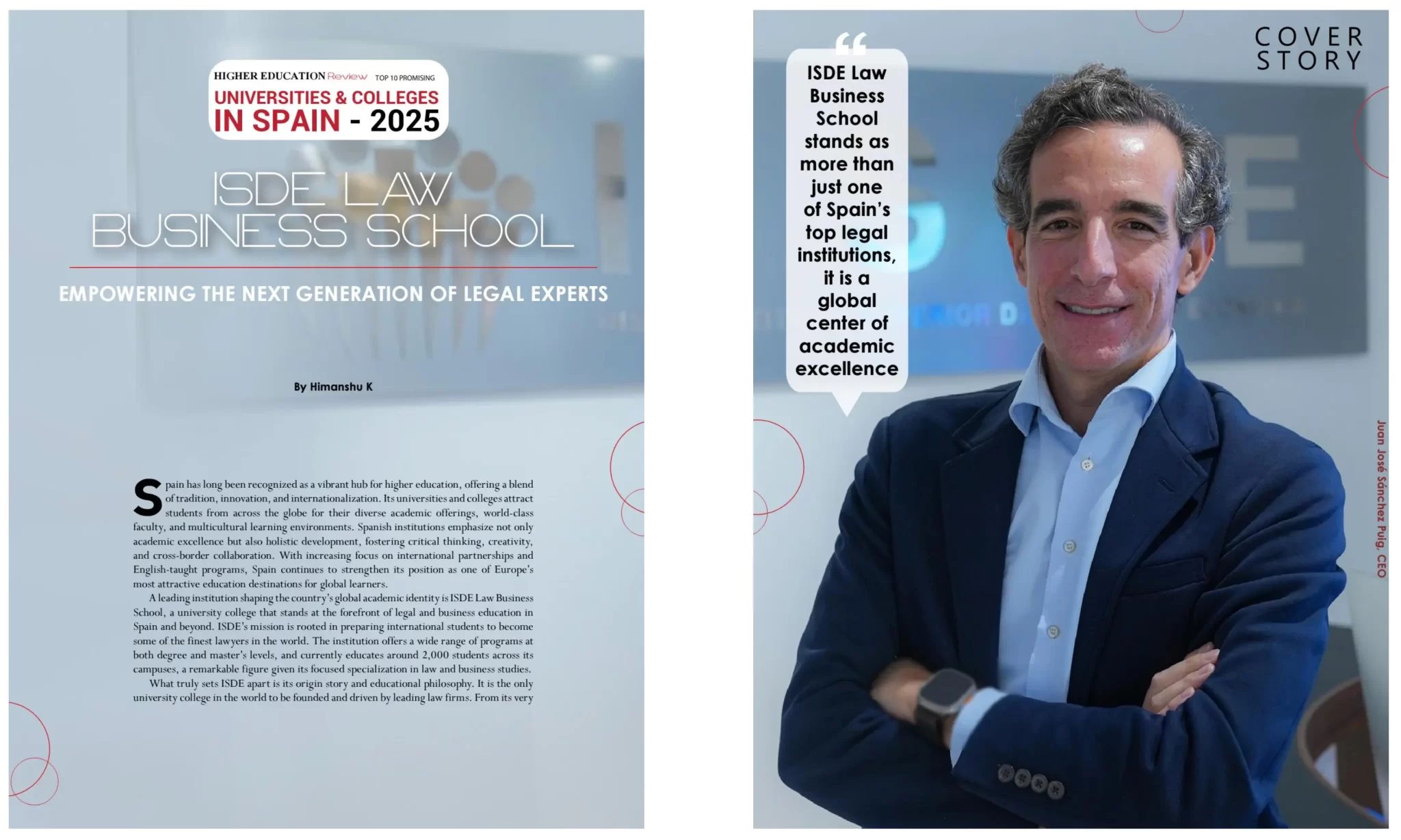 The Higher Education Review – Education Magazine, una publicación líder en el sector de la educación superior y especialmente influyente en India, ha destacado a ISDE en su portada e incluido a la institución en su lista de Top 10 Universidades y Centros Prometedores en España 2025, reforzando el posicionamiento internacional de ISDE.